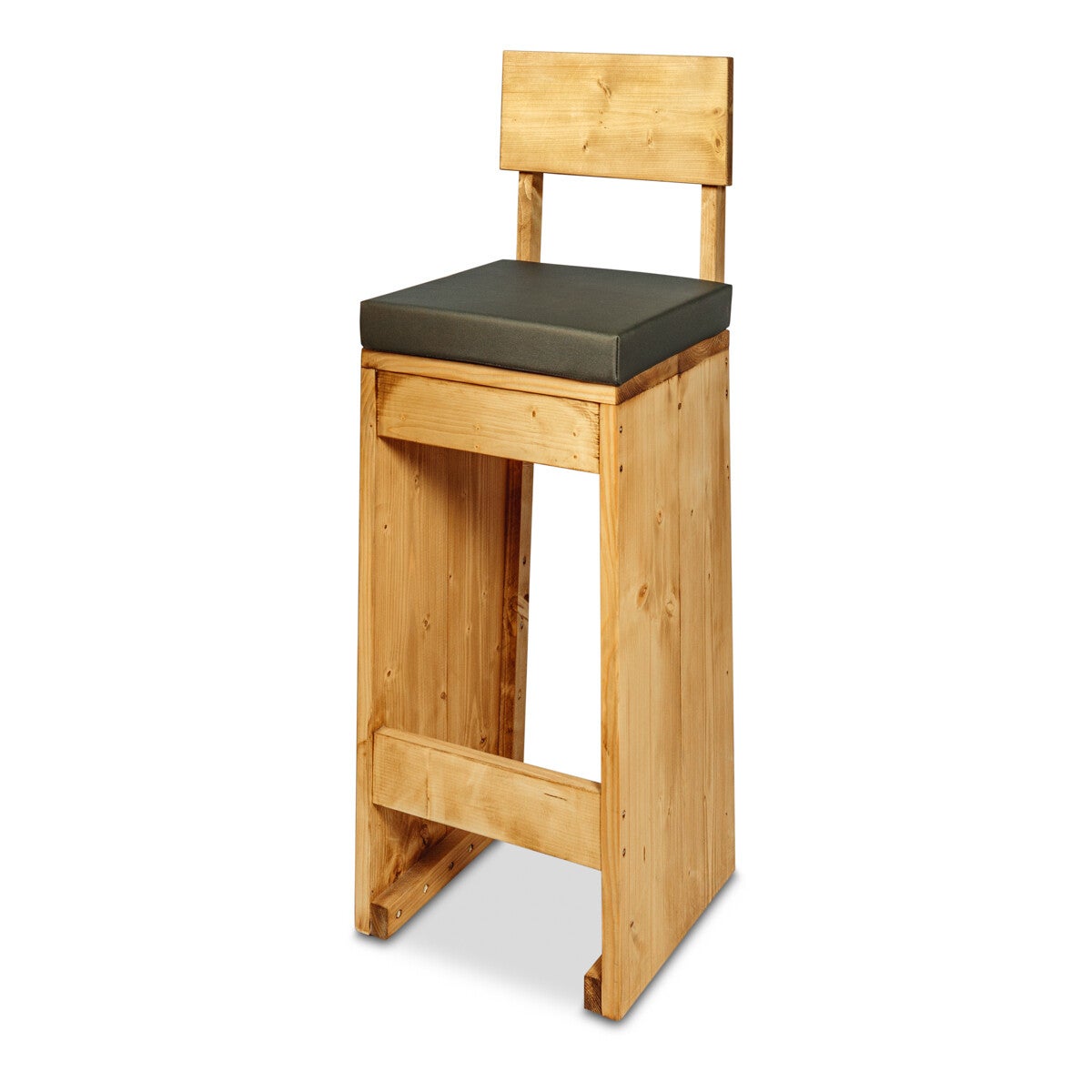 De bartafel en bijpassende krukken zijn volledig vervaardigd uit geschaafd en gedroogd vurenhout van 26 mm dik, waardoor je verzekerd bent van stabiliteit en duurzame kwaliteit. Het blad is 95 x 95 cm en heeft een opgedikte rand van 55 mm, wat de tafel direct een robuuste en luxe uitstraling geeft.