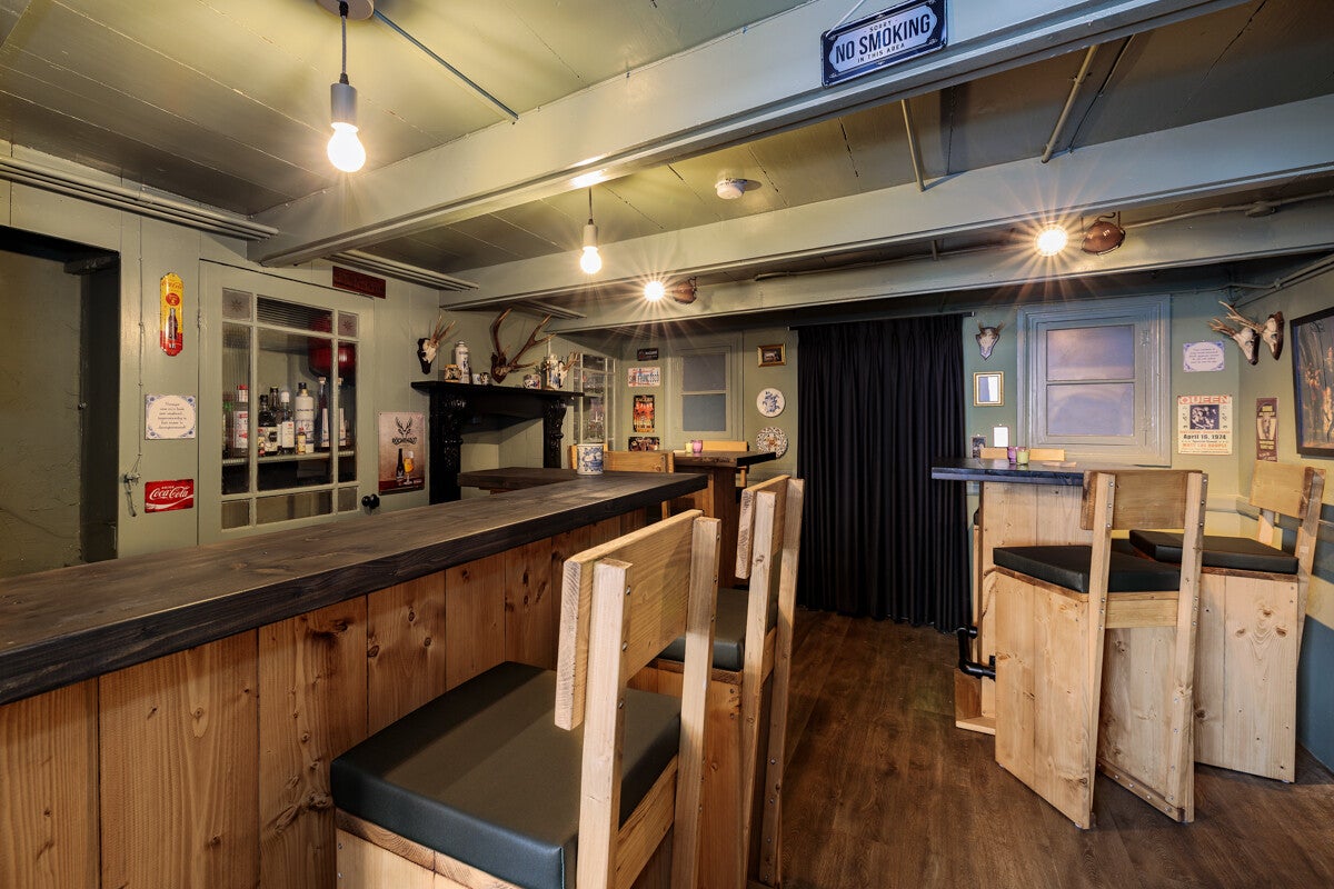 De bartafel is gemaakt van geschaafd en gedroogd vurenhout. De planken hebben een dikte van 26 mm en aan de randen worden de tafelbladen opgedikt naar 55 mm.