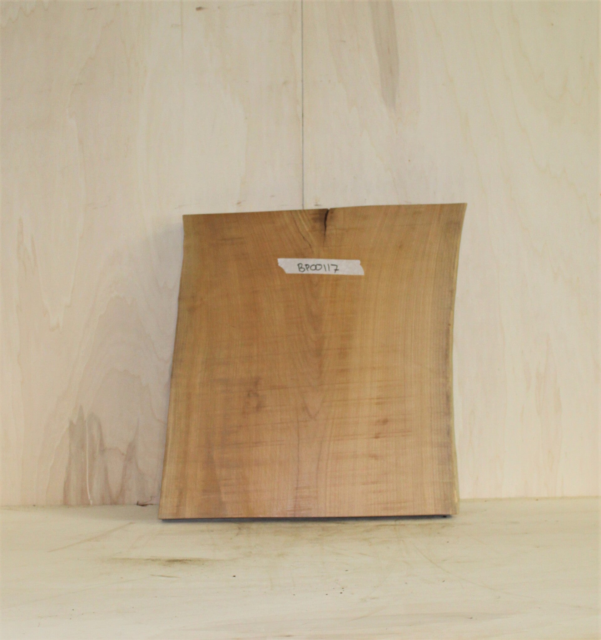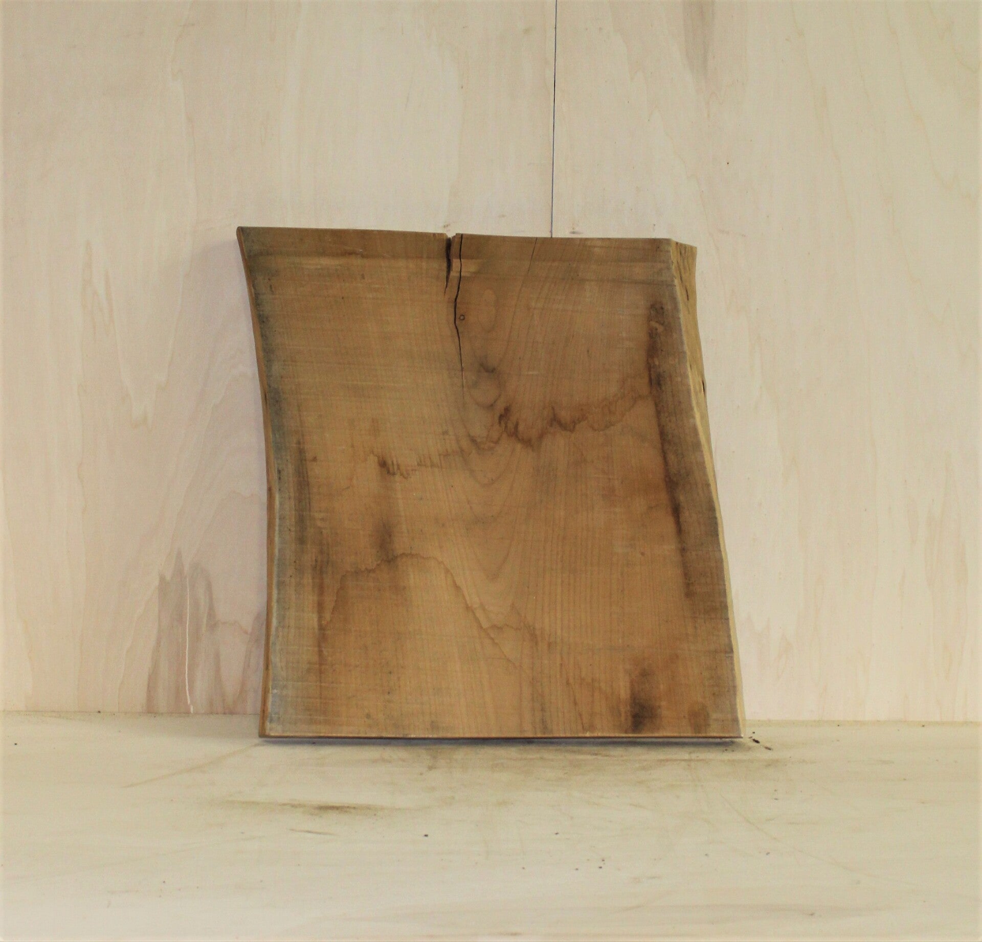 Van deze boomstamplank zijn de houtsoort en herkomst onbekend. De plank is natuurlijk gedroogd.