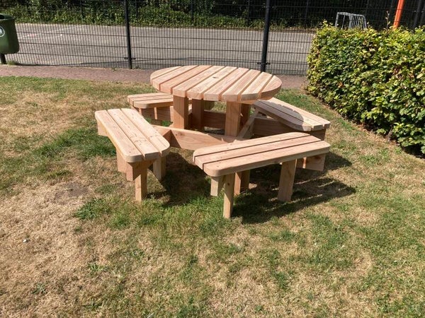 Materiaal: Vergrijsd steigerhout (26 mm dik), metalen beslag.